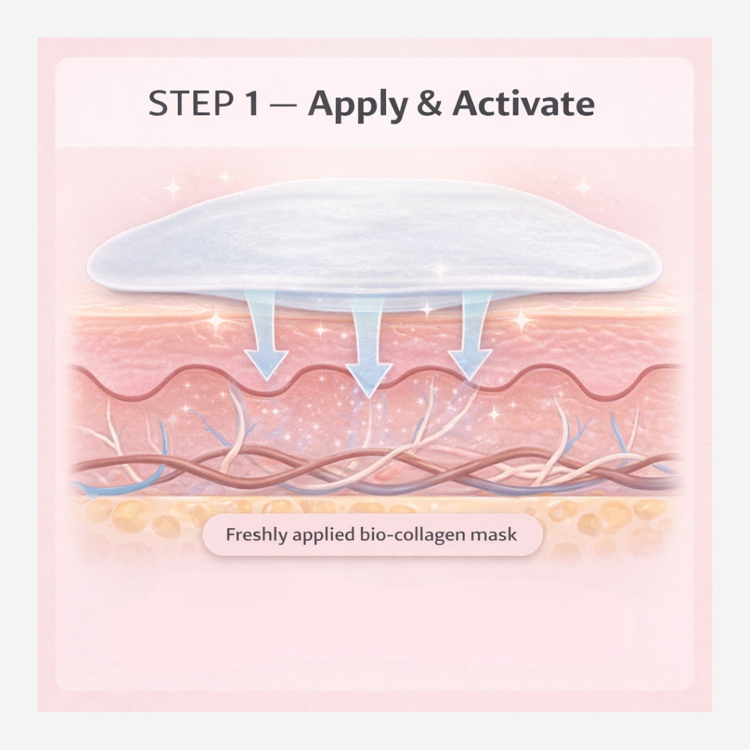 An all-in-one, colour-changing bio-collagen mask for busy mums.