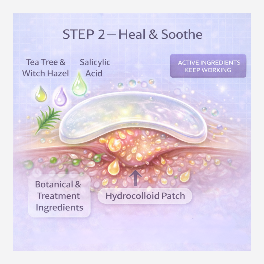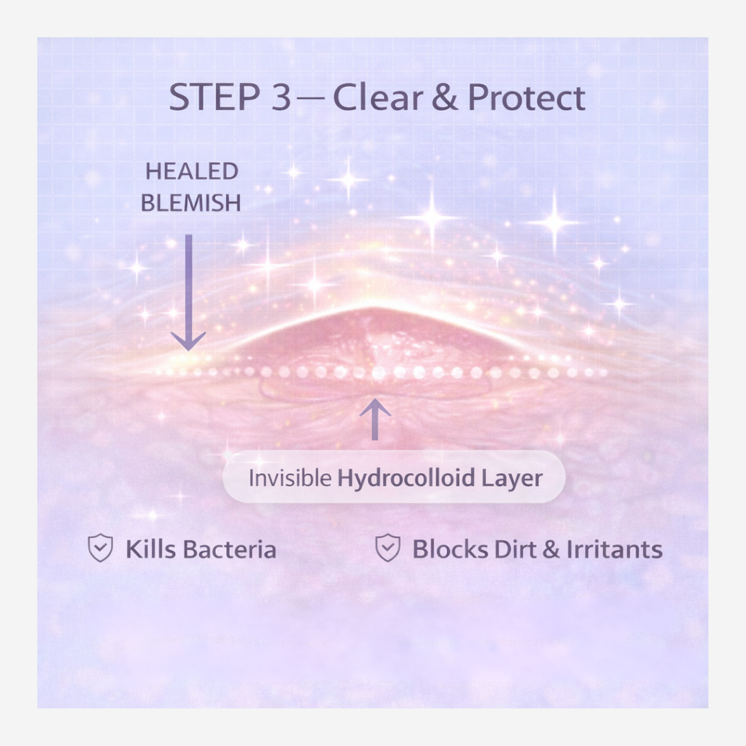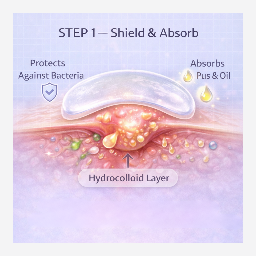 - Hydrocolloid technology draws out excess oil, pus, and impurities while creating a clean, protective barrier.
